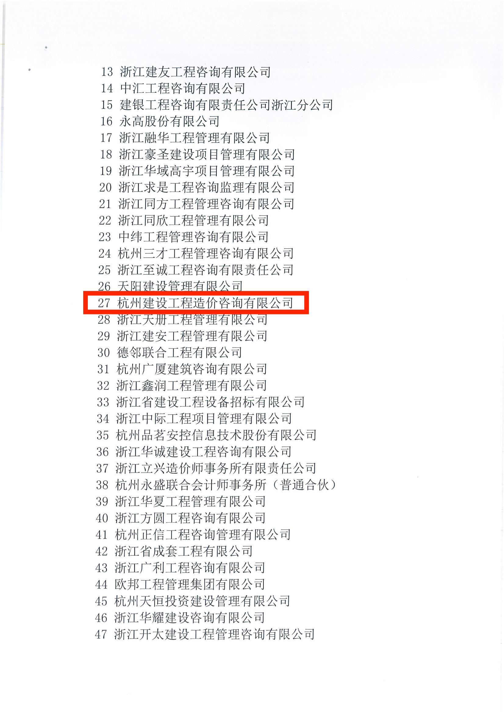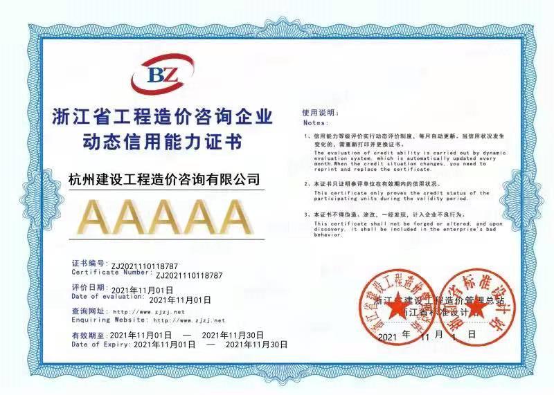 浙江省工程造价咨询企业动态信用能力AAAAA