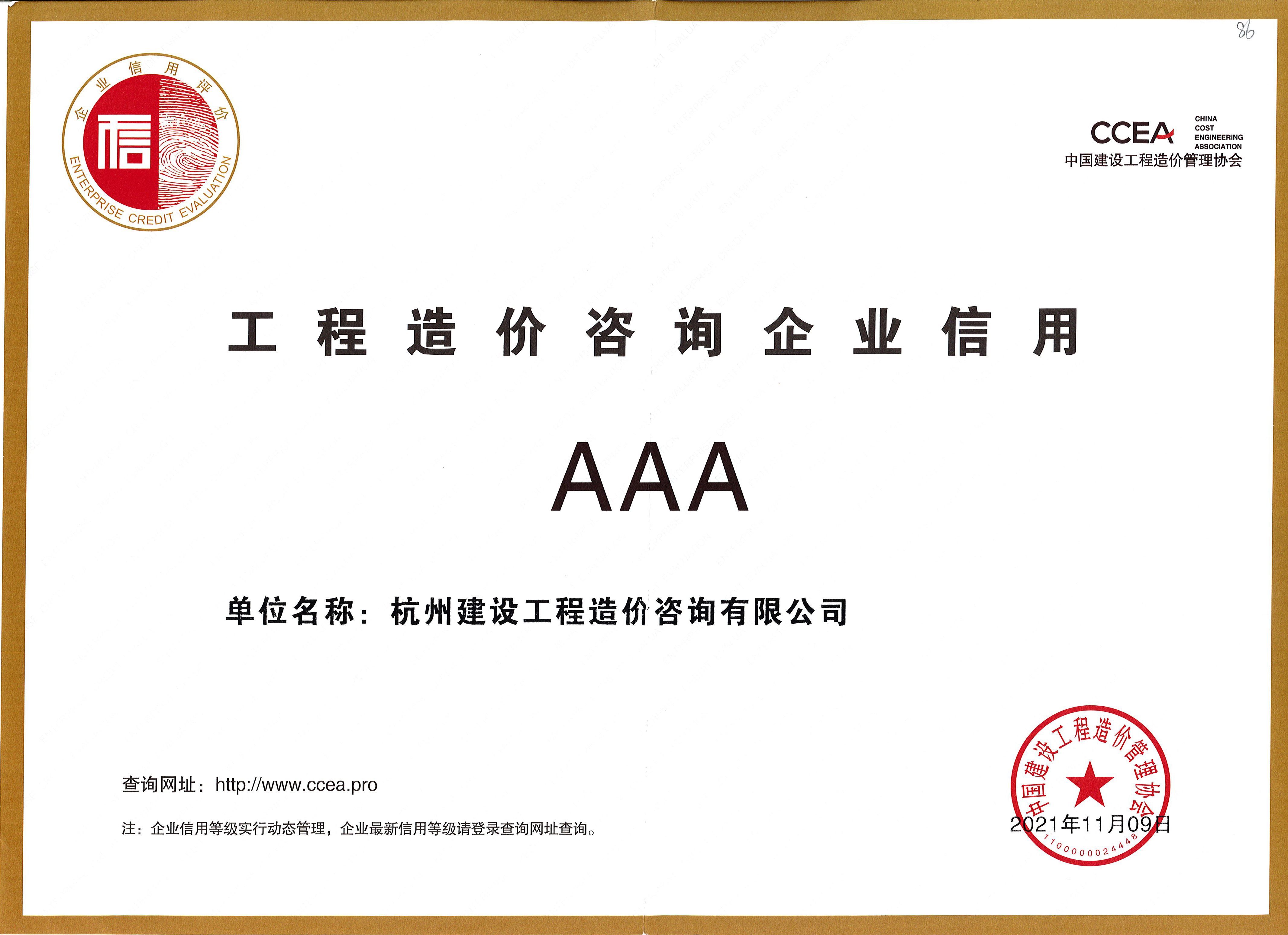 工程造价咨询企业信用AAA——中国建设工程管理协会