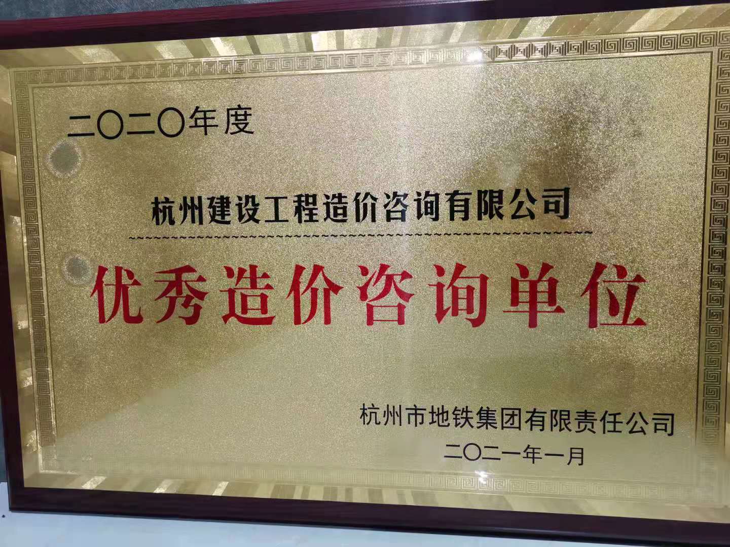 2020年度优秀造价咨询单位——杭州市地铁集团有限责任公司