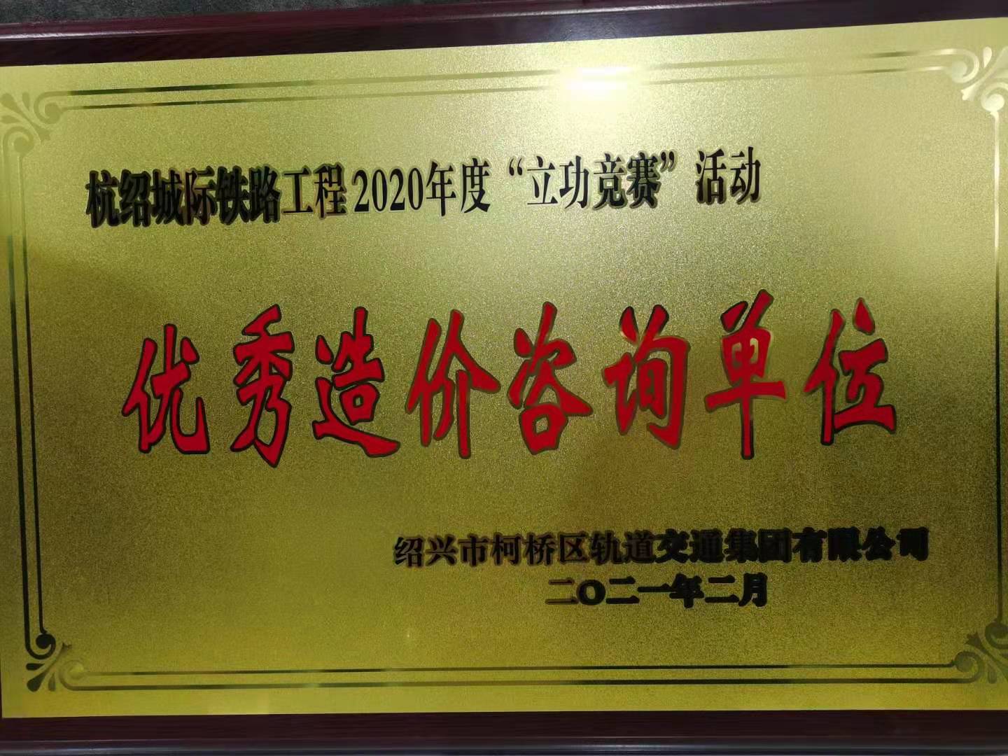 杭绍城际铁路工程2020年度“立功竞赛”活动获优秀造价咨询单位——绍兴市柯桥区轨道交通集团有限责任公司