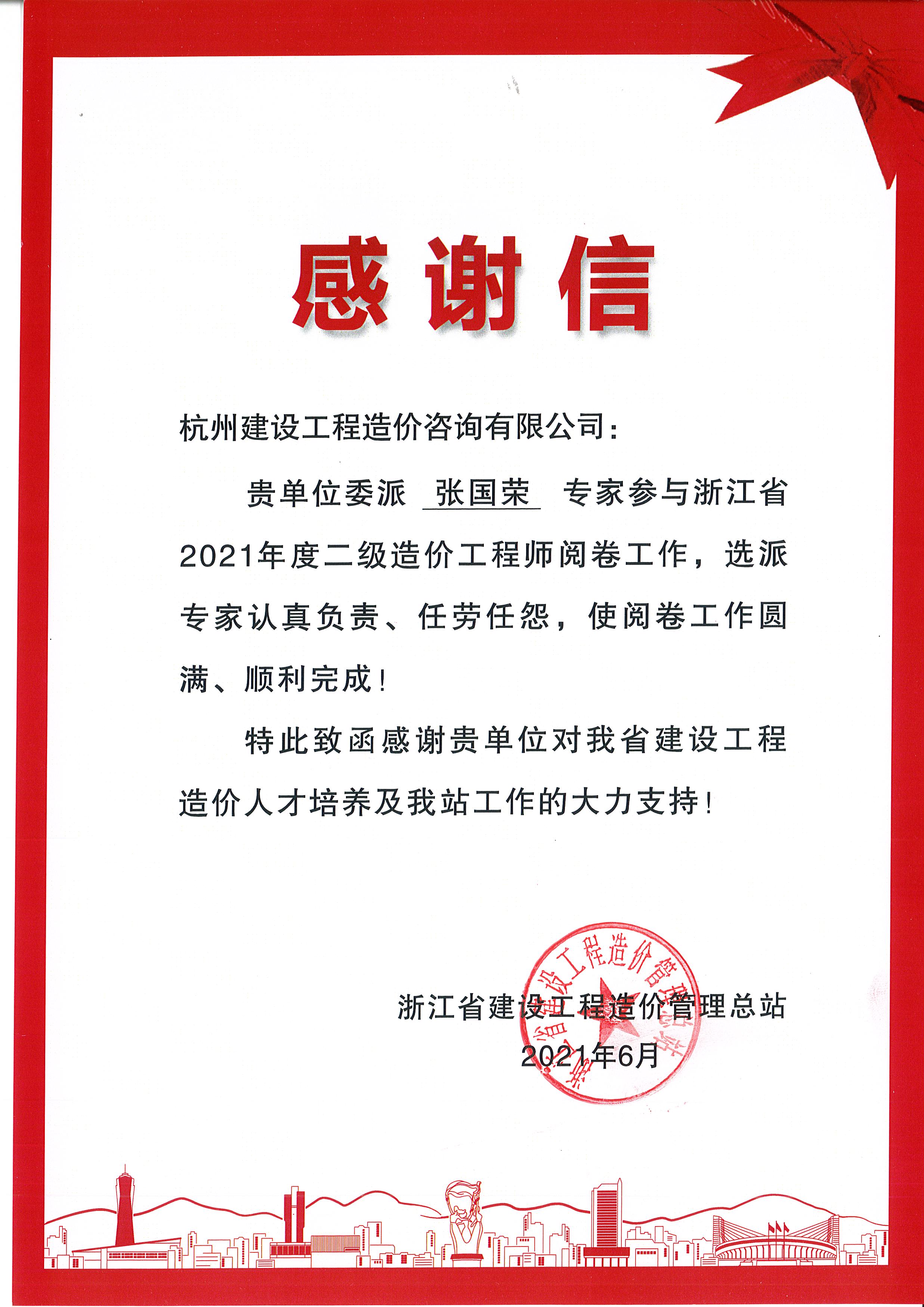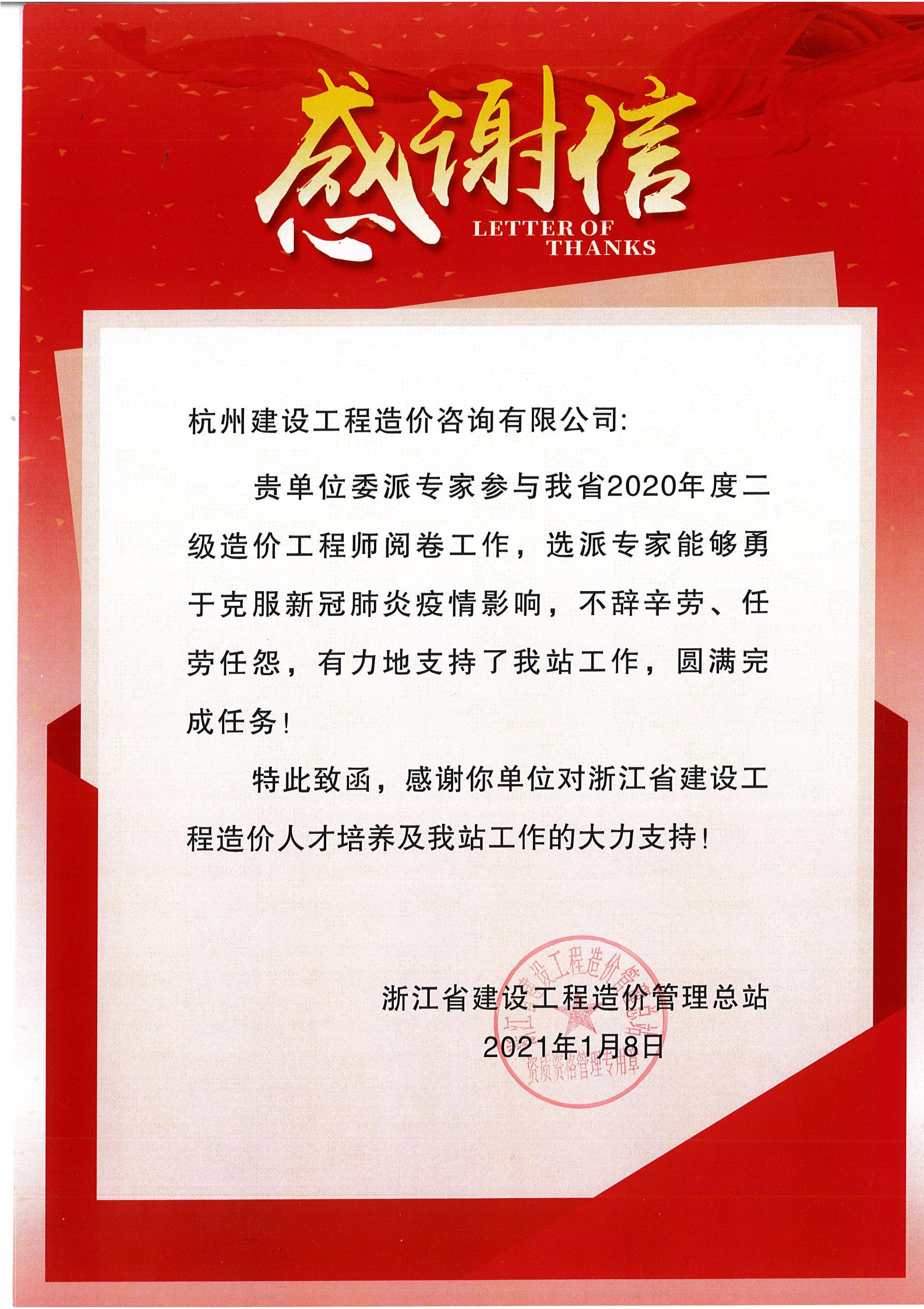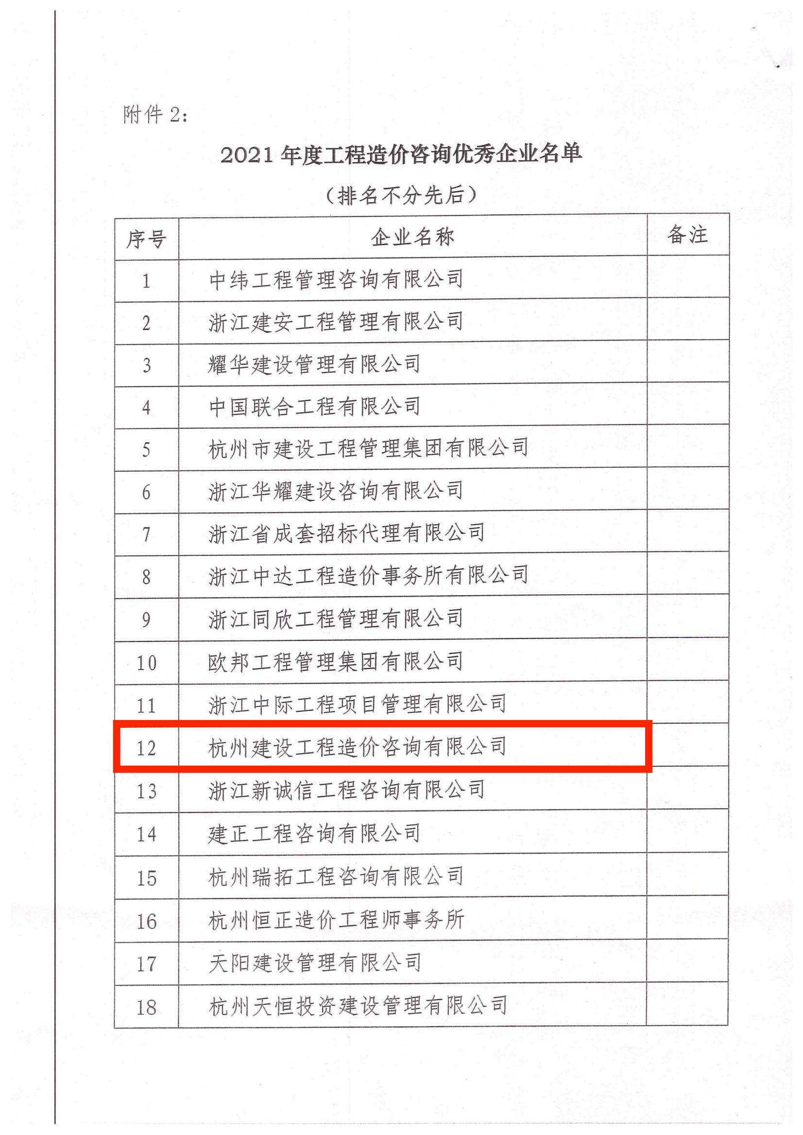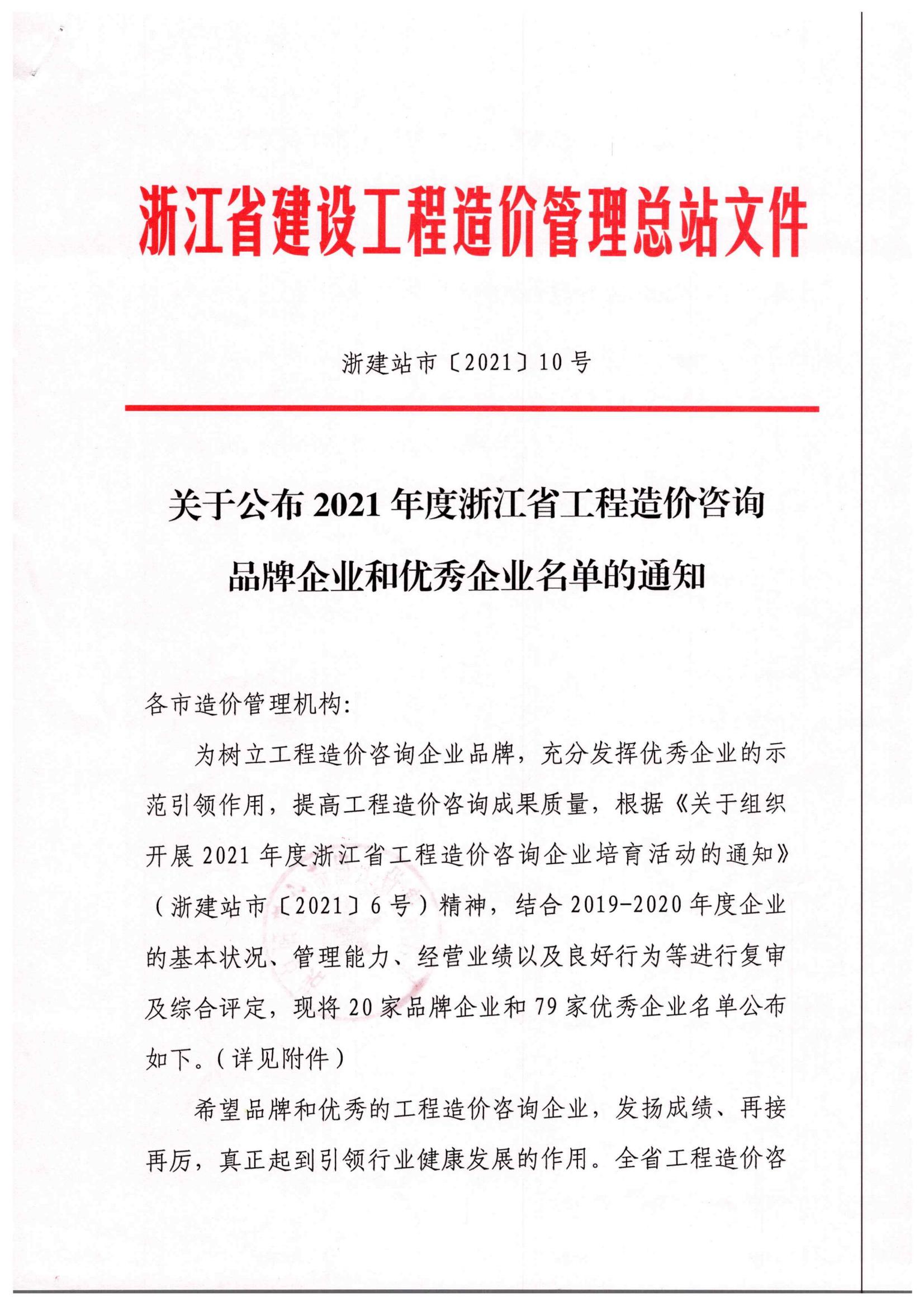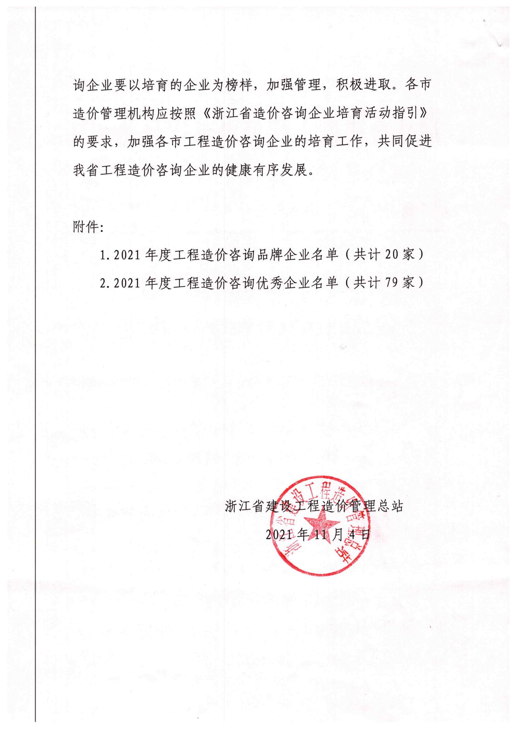 2021年度浙江省工程造价咨询优秀企业——浙江省工程造价管理总站