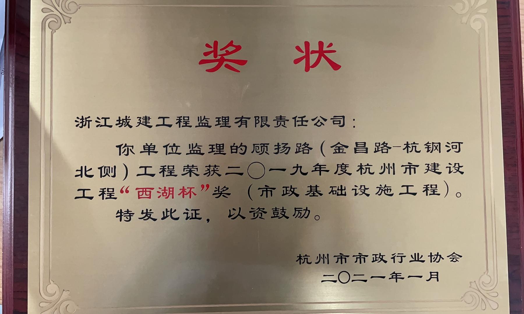 顾扬路(金昌路—杭钢河北侧)工程——荣获2019年度杭州市建设工程“西湖杯”奖(市政基础设施工程)