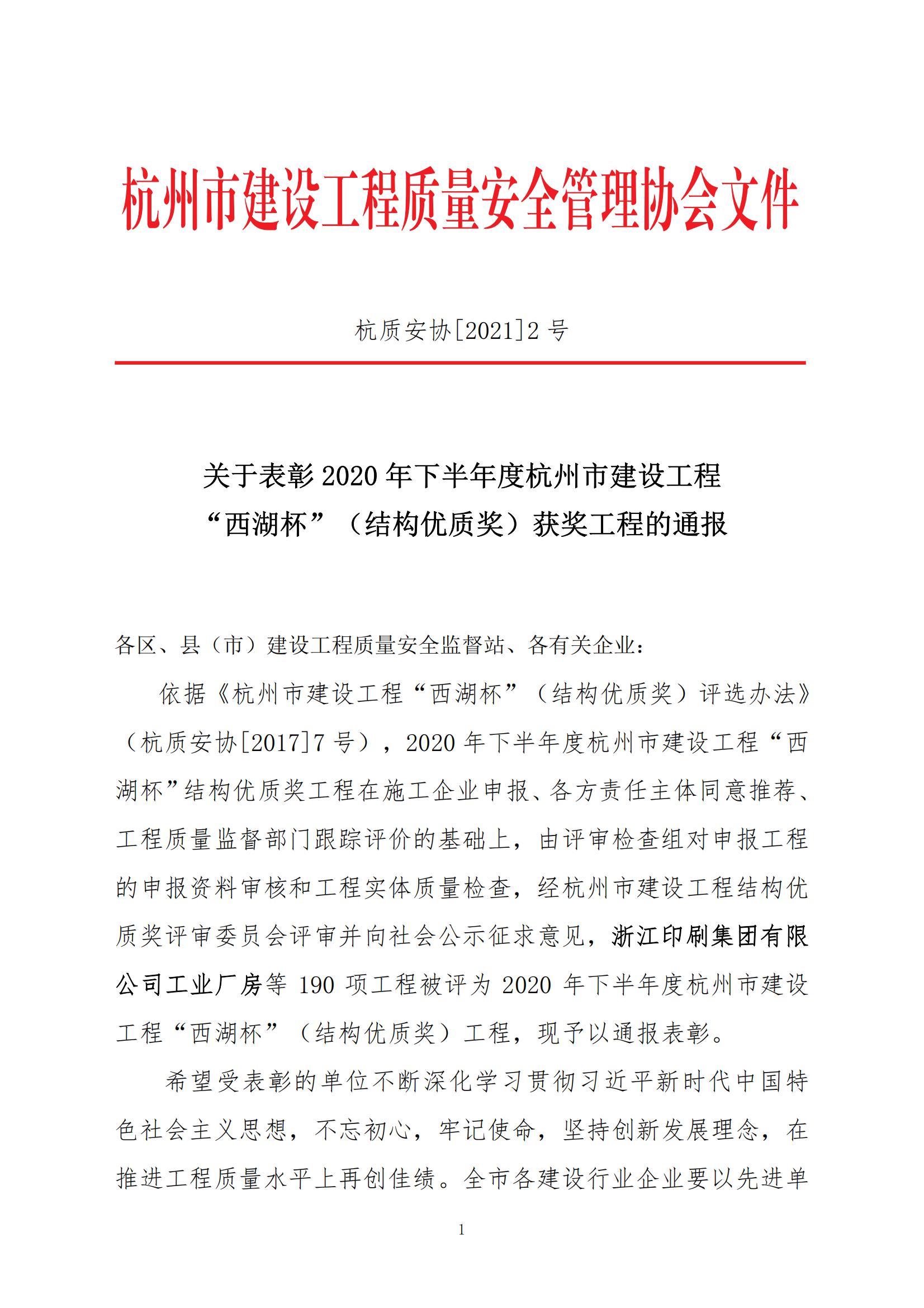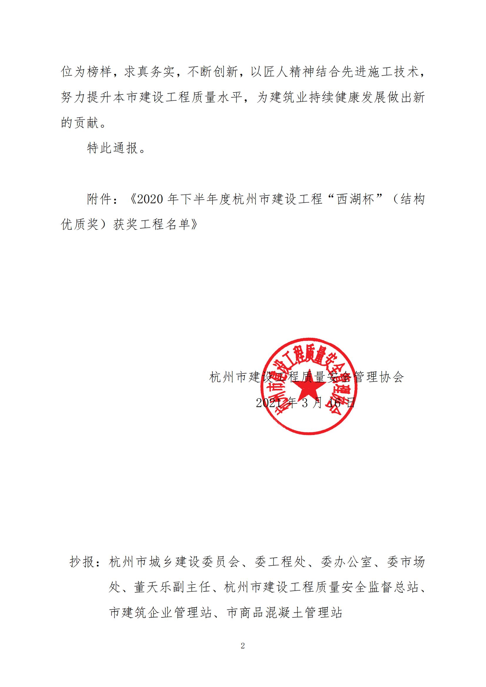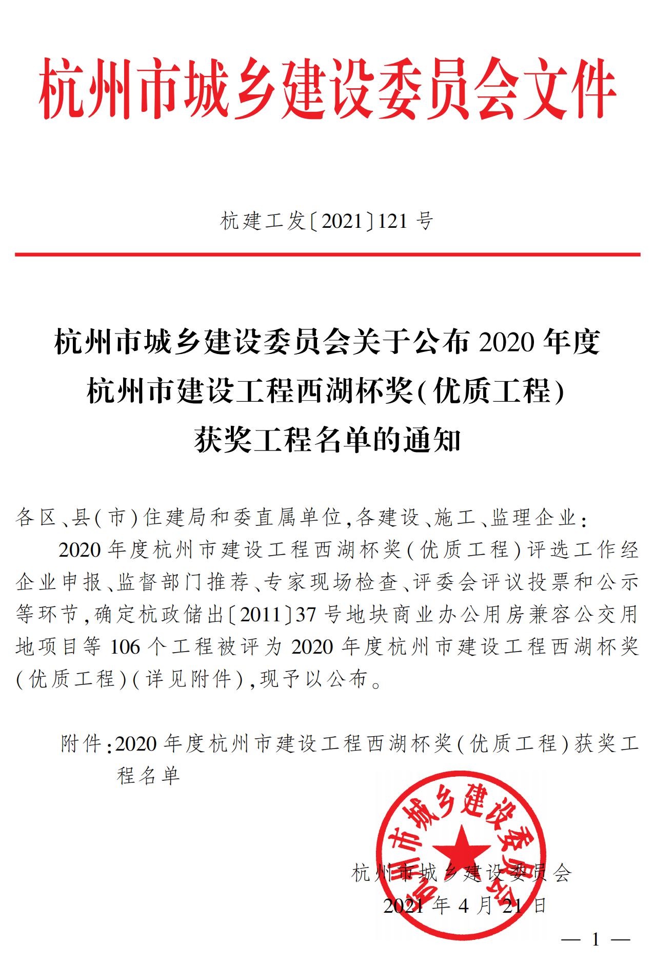 杭州地铁9号线一期工程土建施工SG9-6标段(地铁)——荣获2020年下半年度杭州市建设工程“西湖杯”(结构优质奖)
