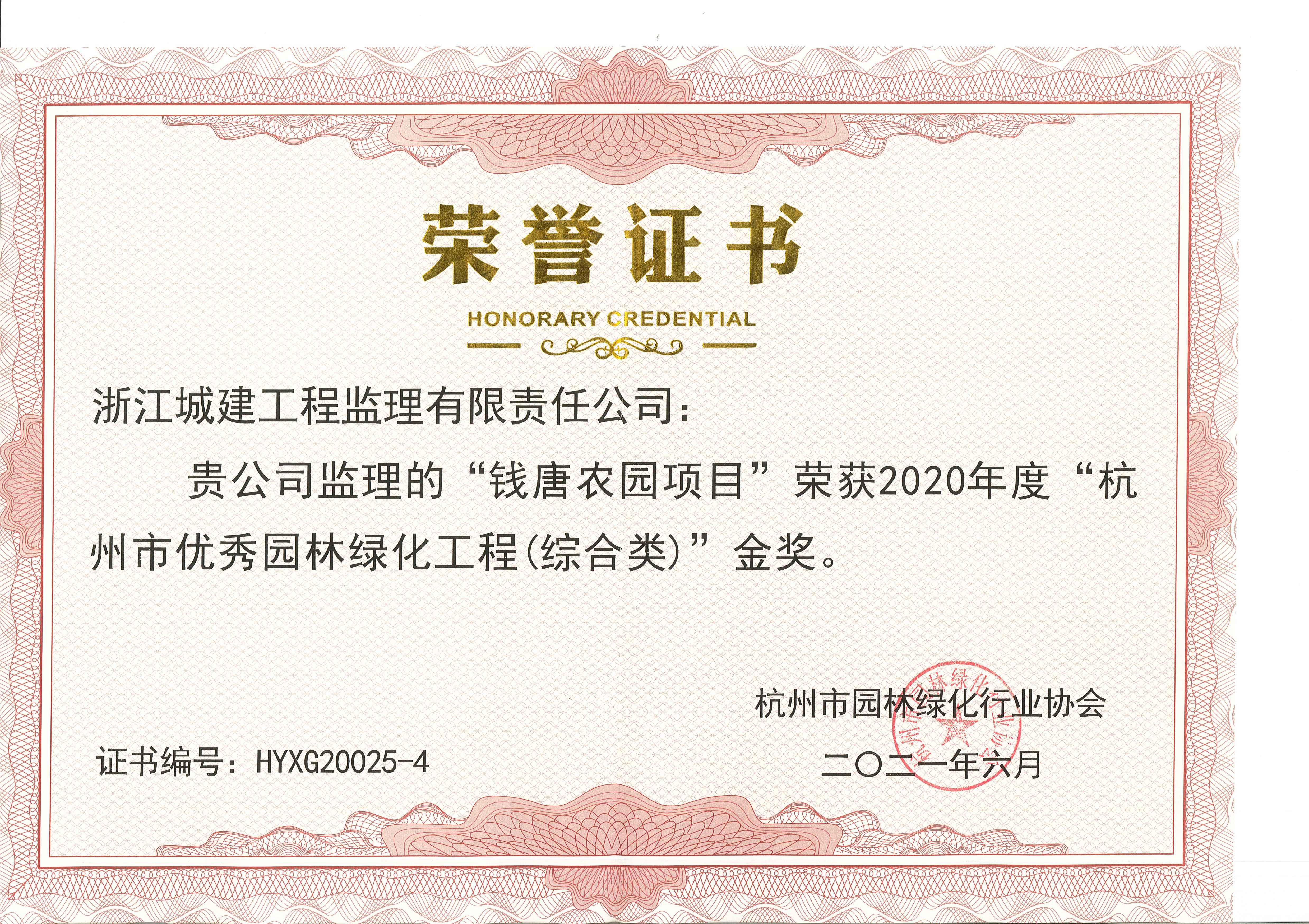 钱唐农园项目——荣获2020年度“杭州市优秀园林绿地工程(综合类)“金奖”