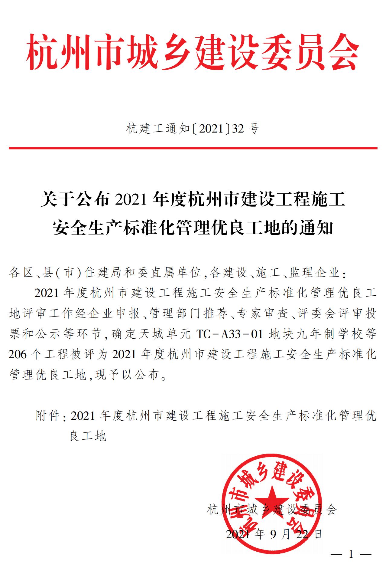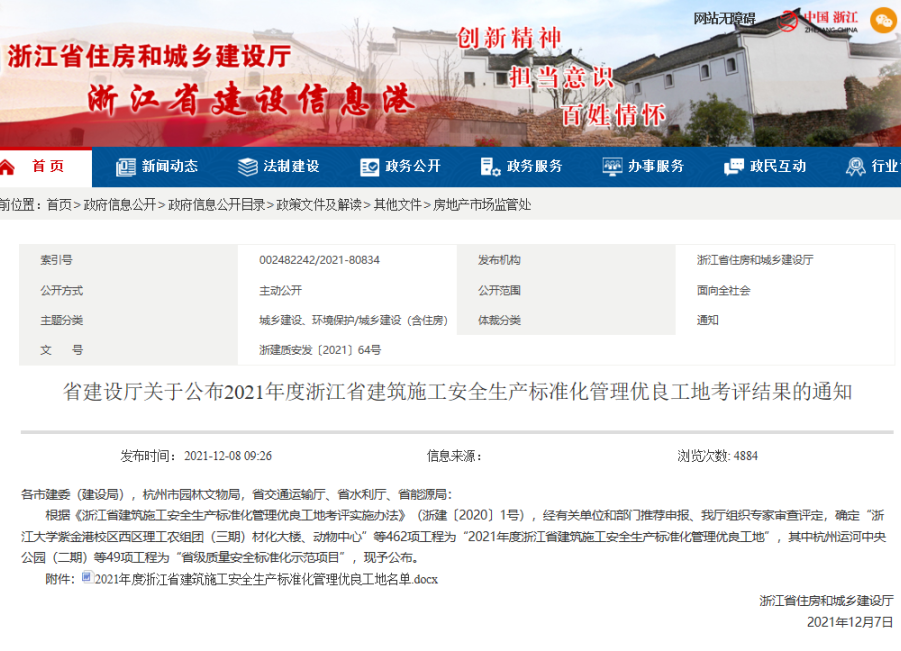 顾扬路(平炼路—康桥路)工程——荣获2021年度浙江省建筑施工安全生产标准化管理优良工地
