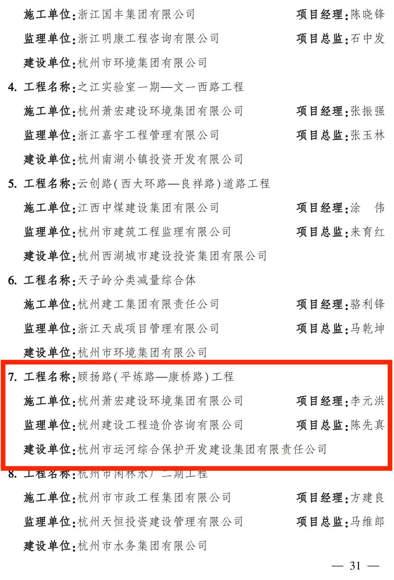顾扬路(平炼路—康桥路)工程(市政)——荣获2020年下半年度杭州市建设工程“西湖杯”(结构优质奖)