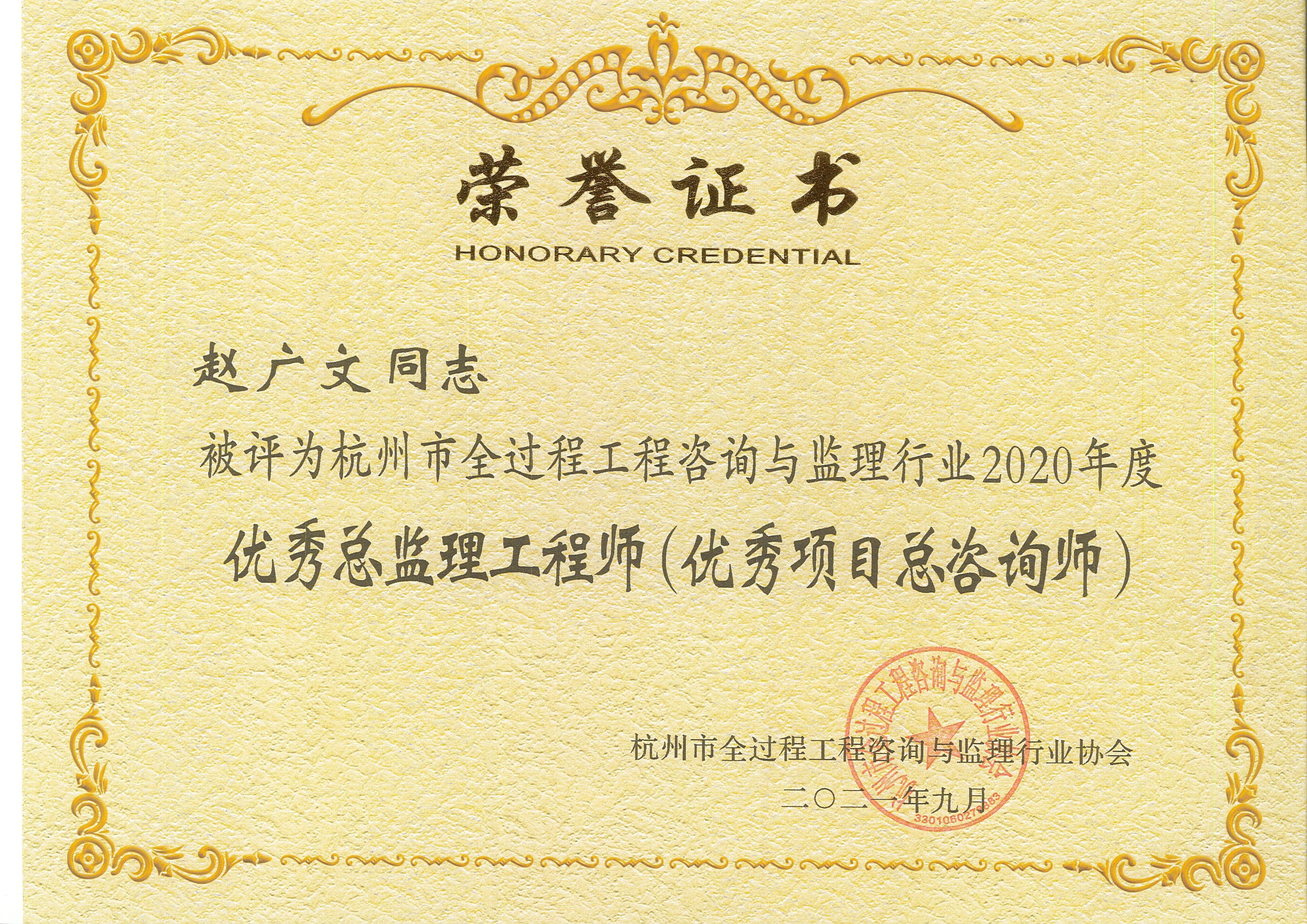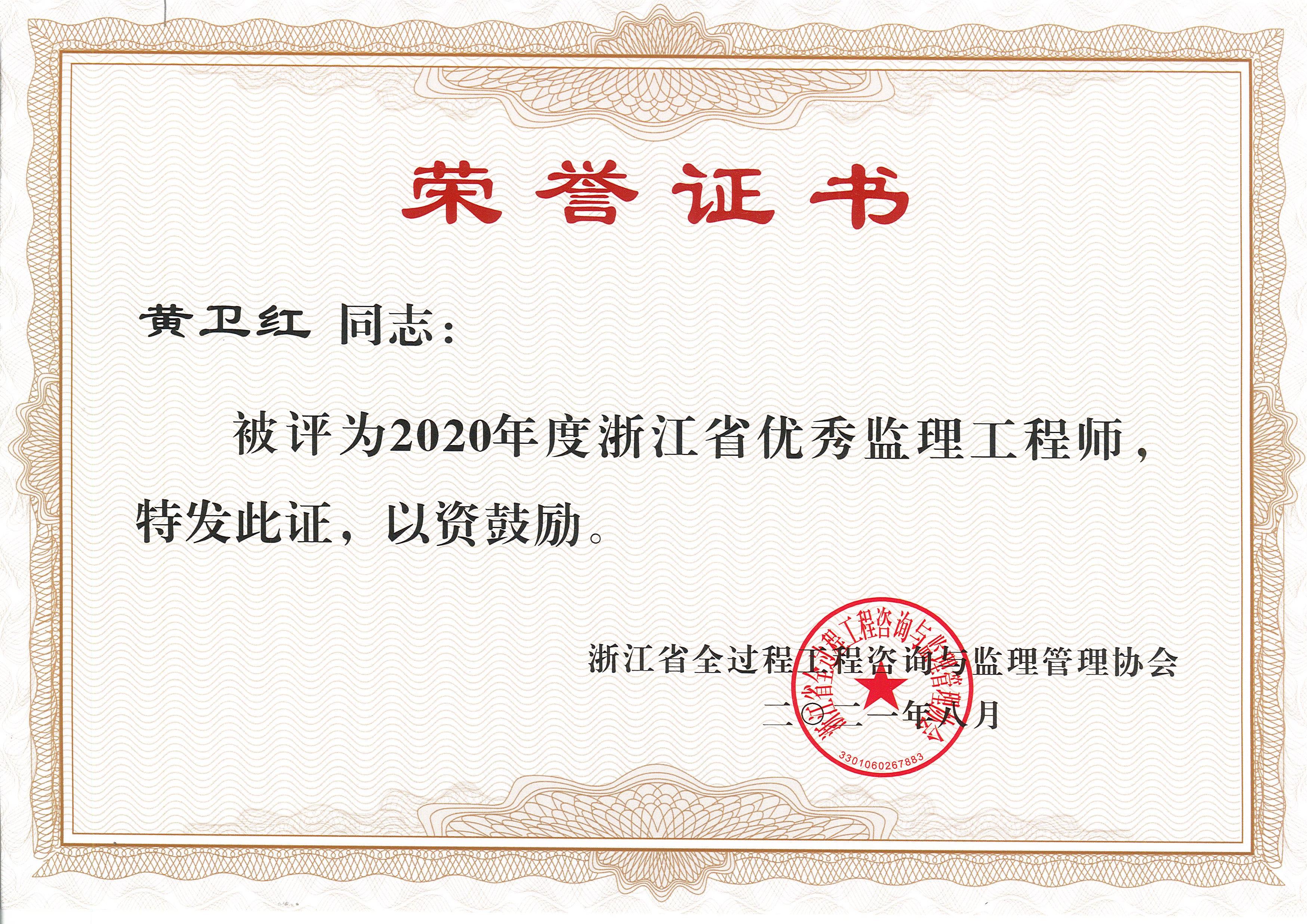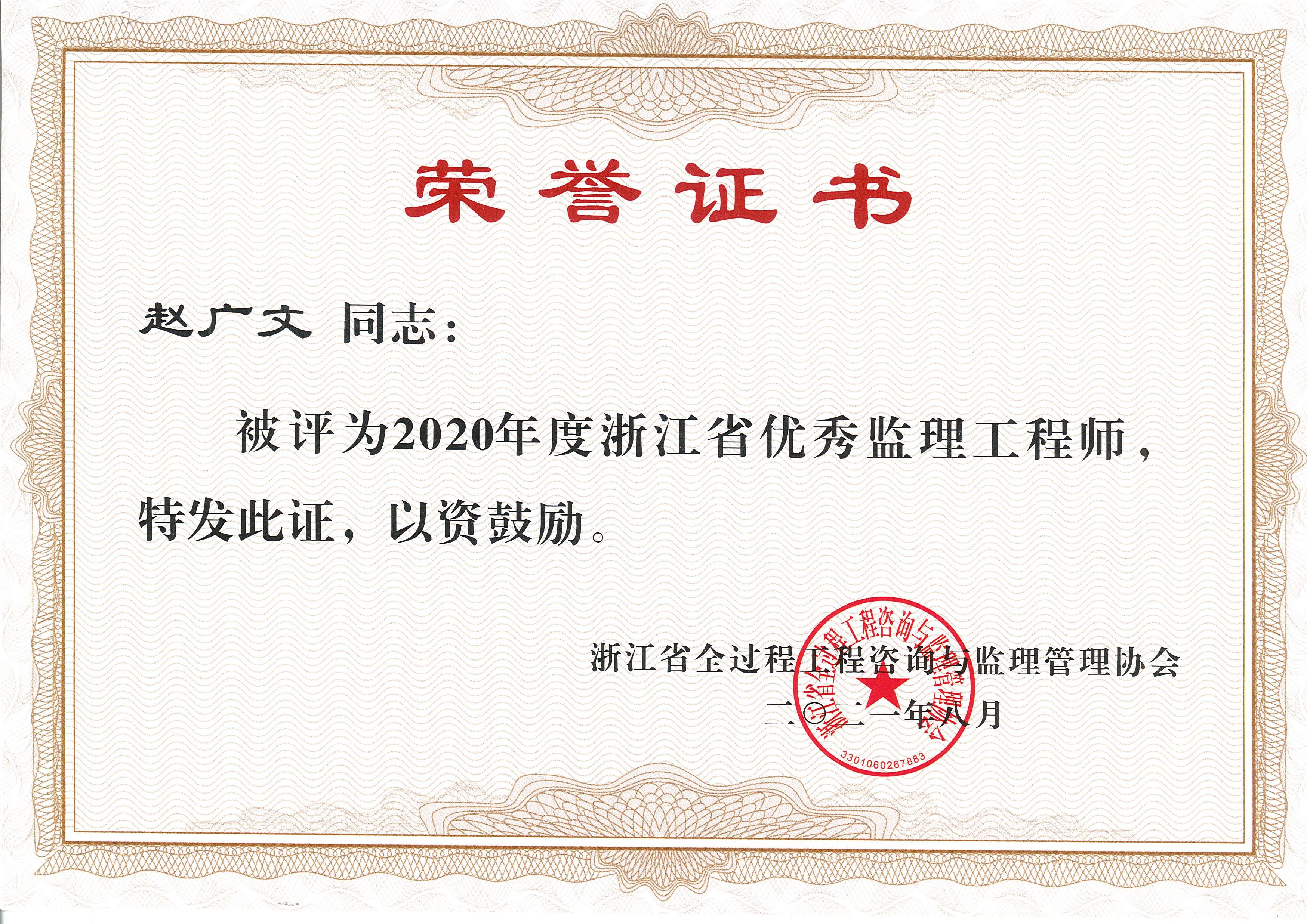 2020年度浙江省优秀监理工程师:赵广文、黄卫红
