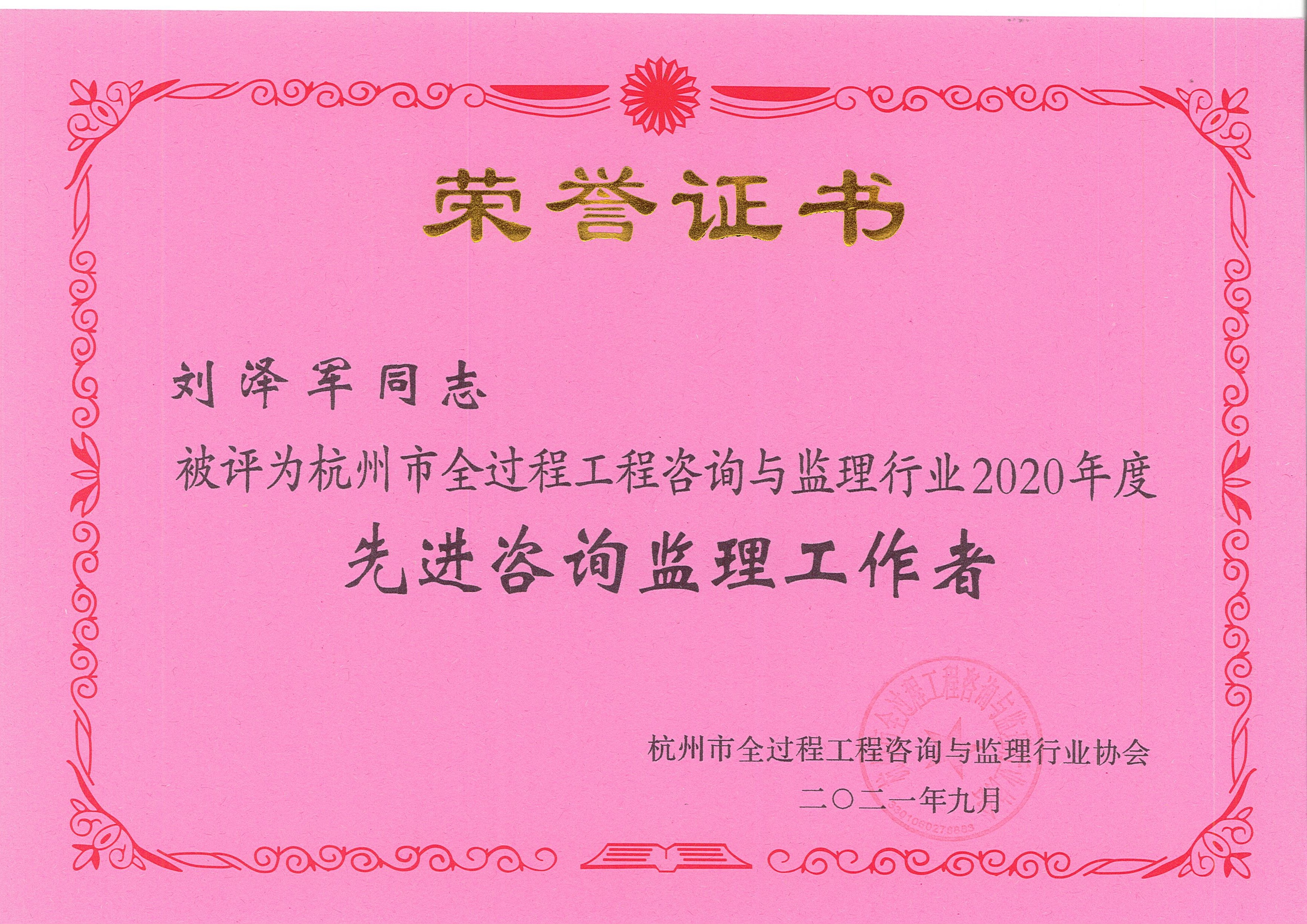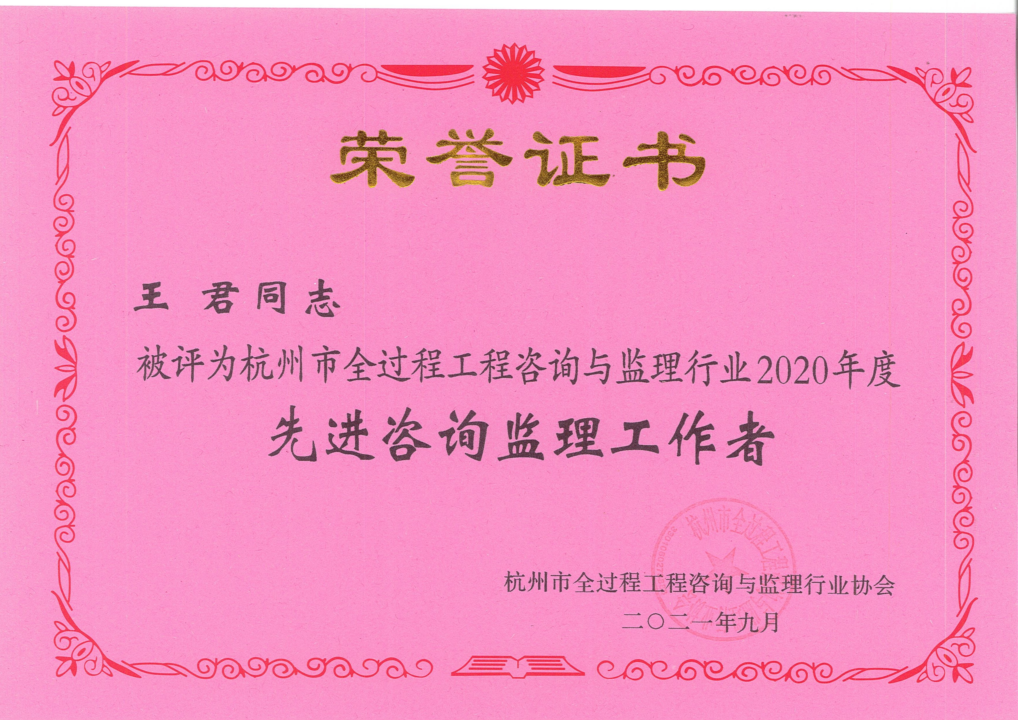 2020年度杭州市先进咨询监理工作者:王斌、王君、刘泽军