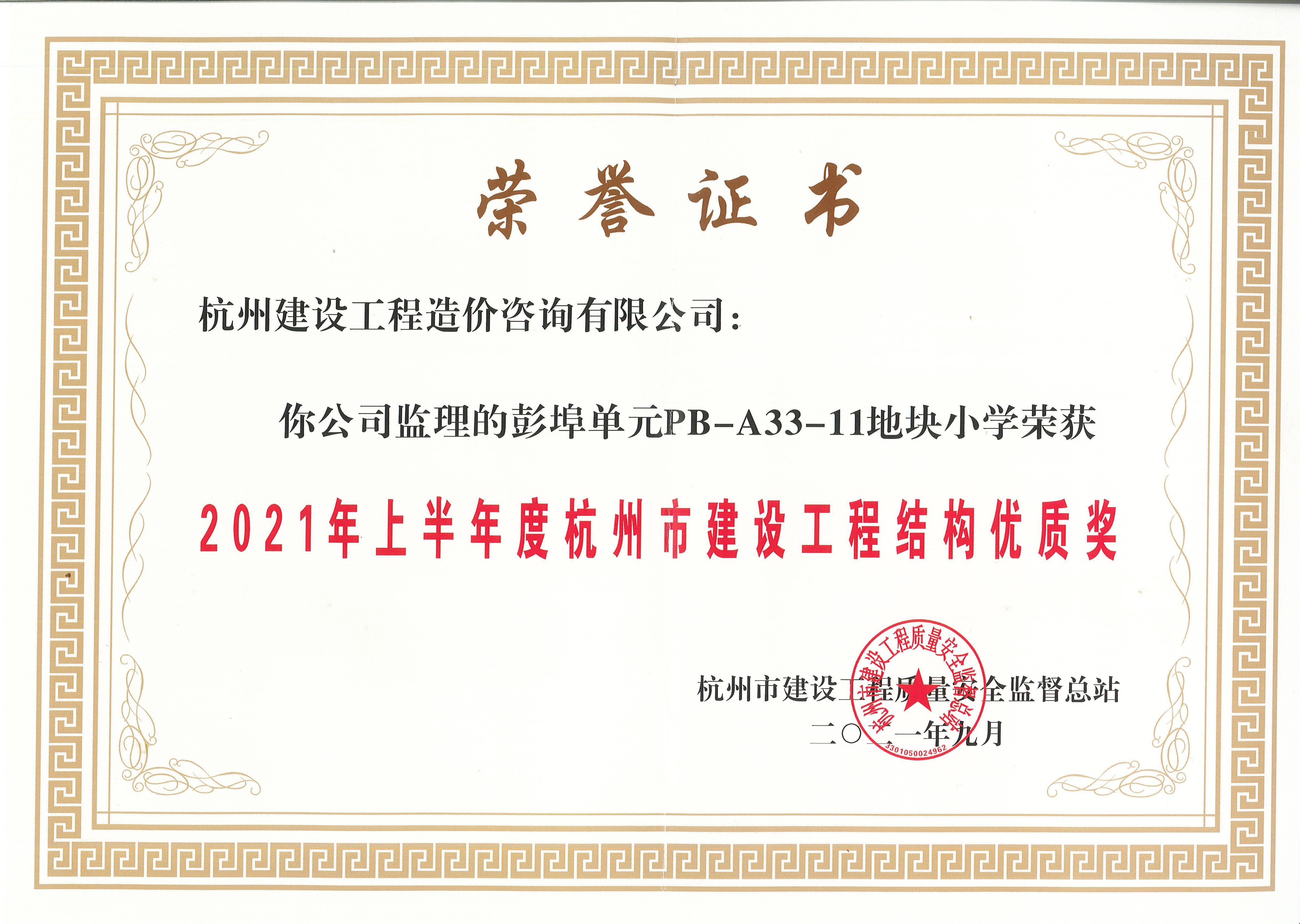 彭埠单元PB-A33-11地块小学——荣获2021年上半年度杭州市建设工程结构优质奖