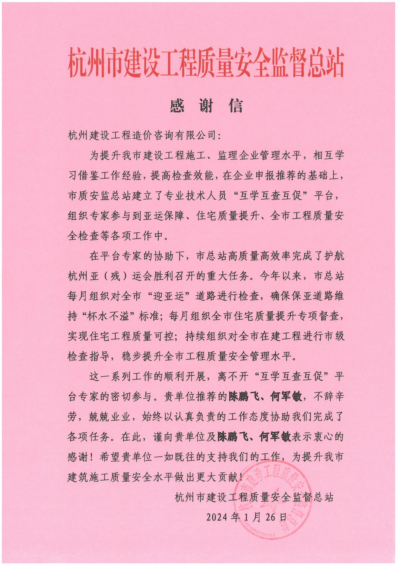 2.楼云先2024年度二级造价工程师阅卷感谢信