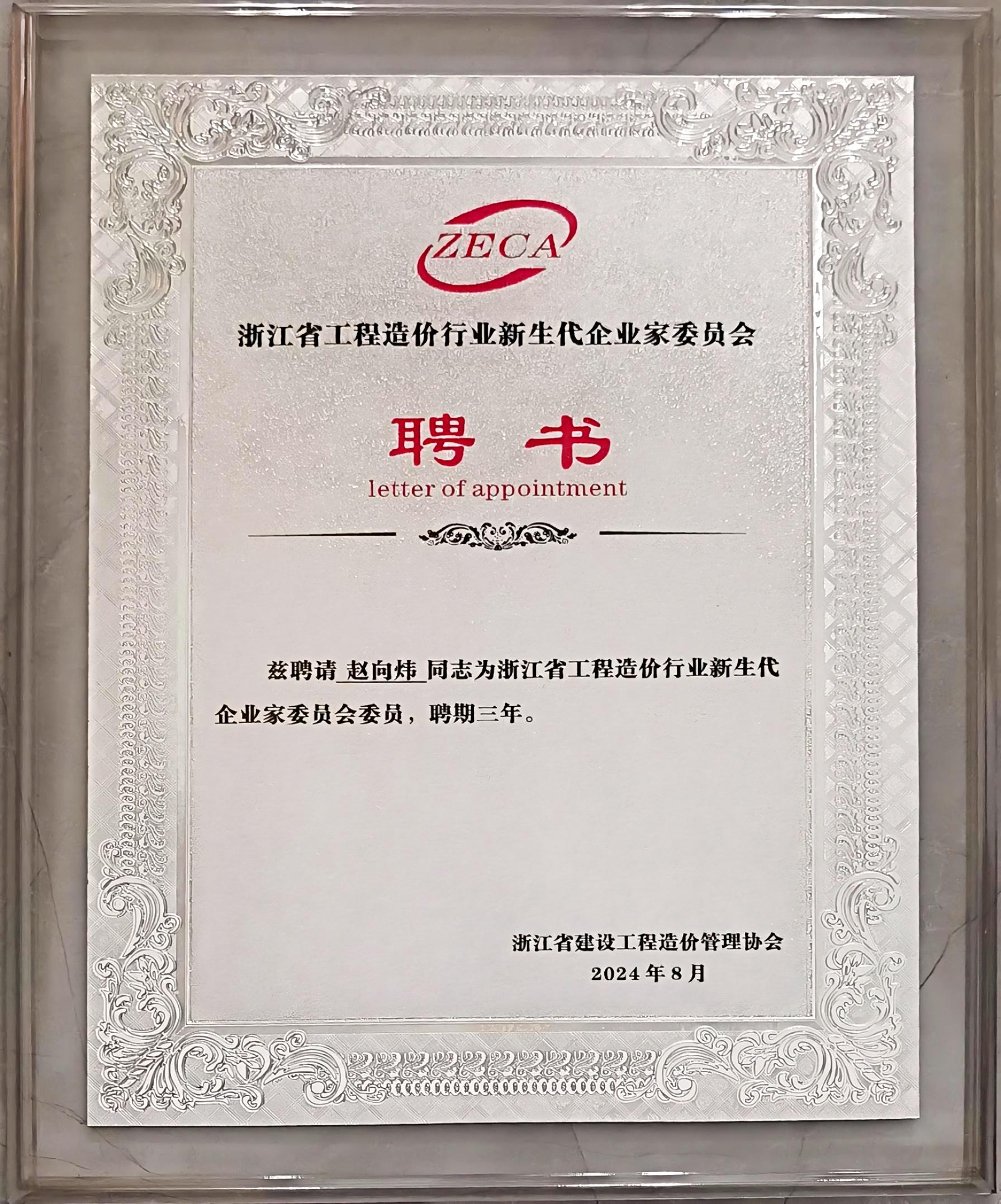 1.赵向炜被聘请为浙江省工程造价行业新生代企业家委员会委员