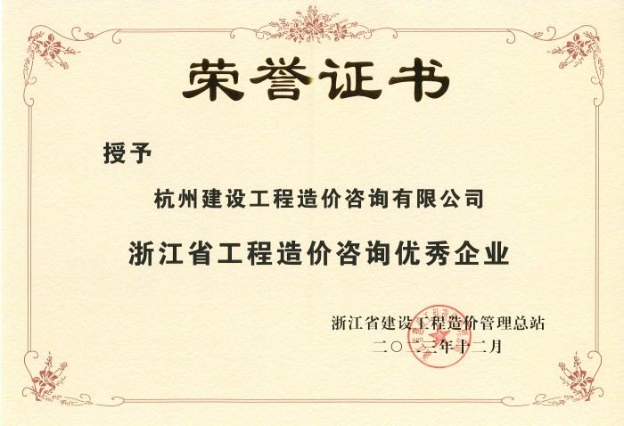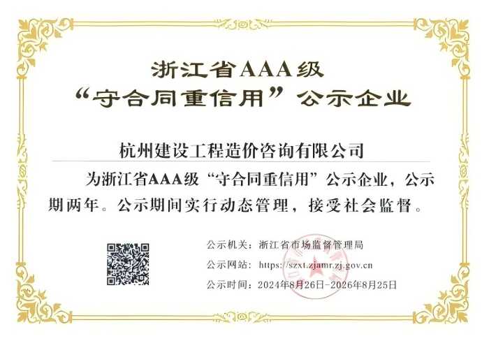 浙江省工程造价咨询企业动态信用能力AAAAA
