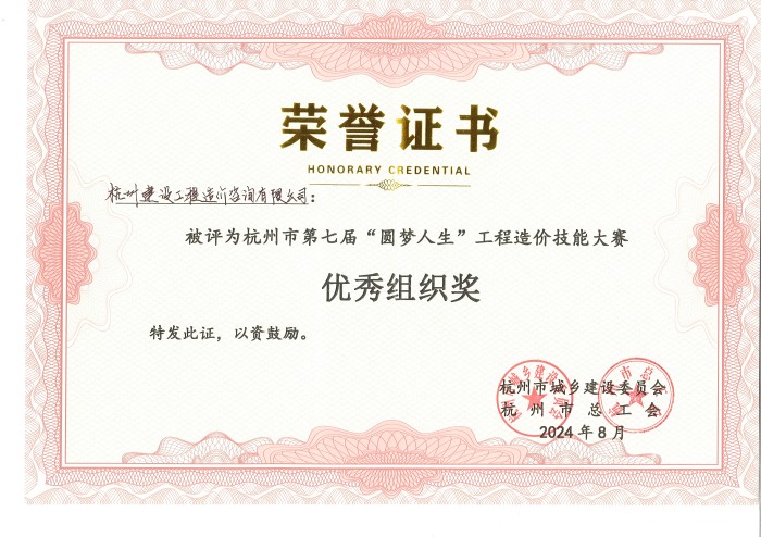 杭州市第七届“圆梦人生”工程造价技能大赛优秀组织奖