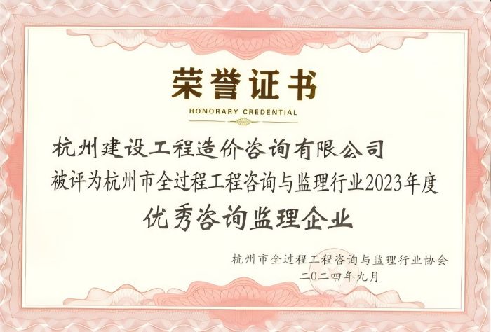 杭州市全过程工程咨询与监理行业2023年度优秀咨询监理企业