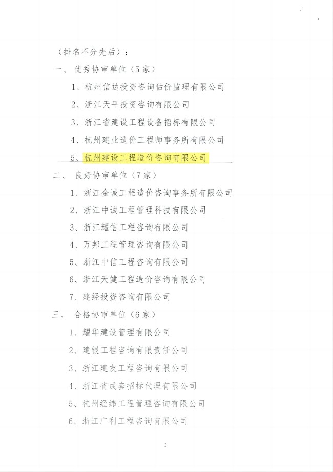2019年浙江省优秀造价咨询企业