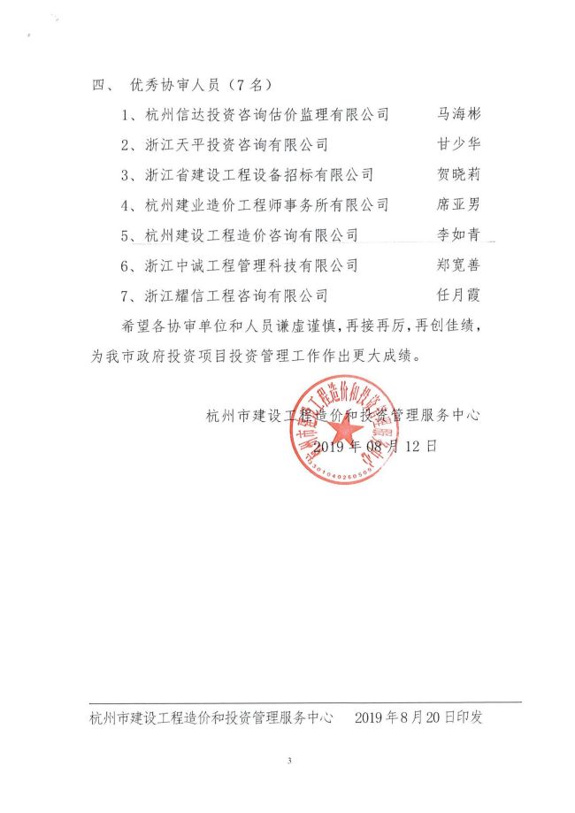 2018年度杭州市政府投资项目概(预)算优秀协审单位