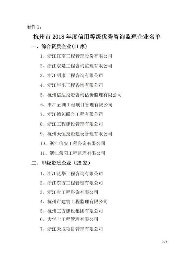 2018年度杭州市信用等级优秀咨询监理企业