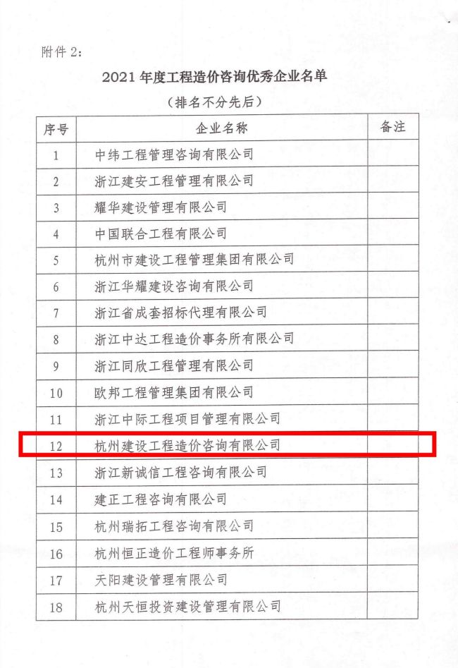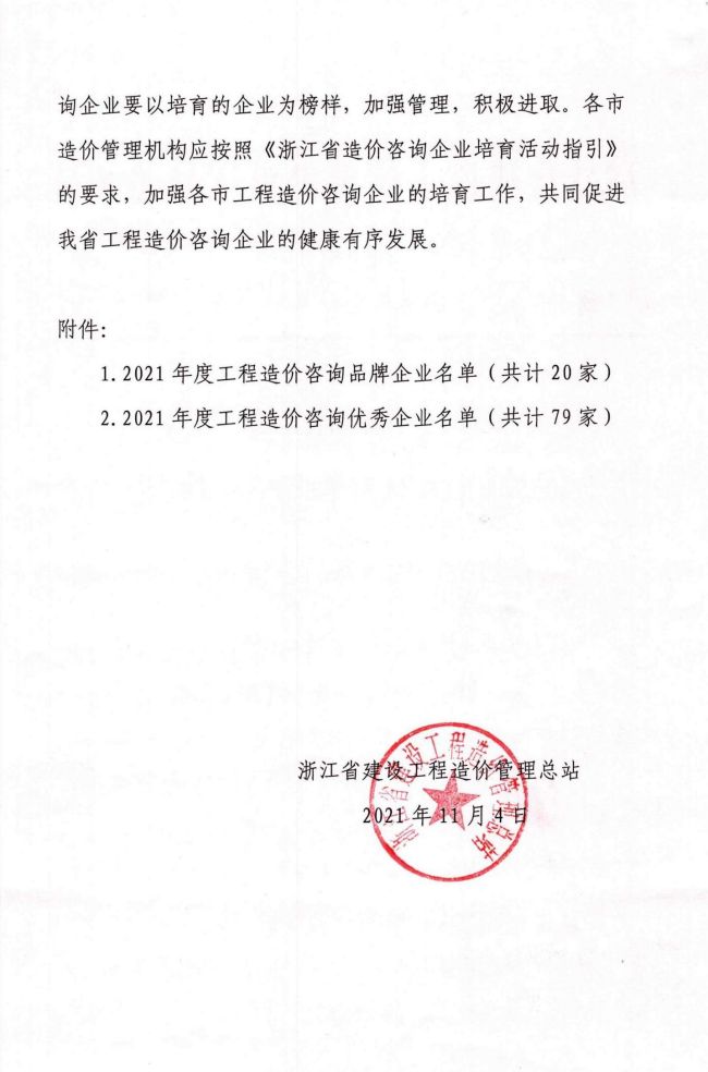 2021年度浙江省工程造价咨询优秀企业