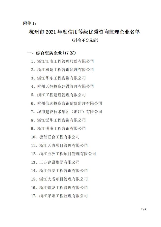 杭州市2021年度信用等级优秀咨询监理企业